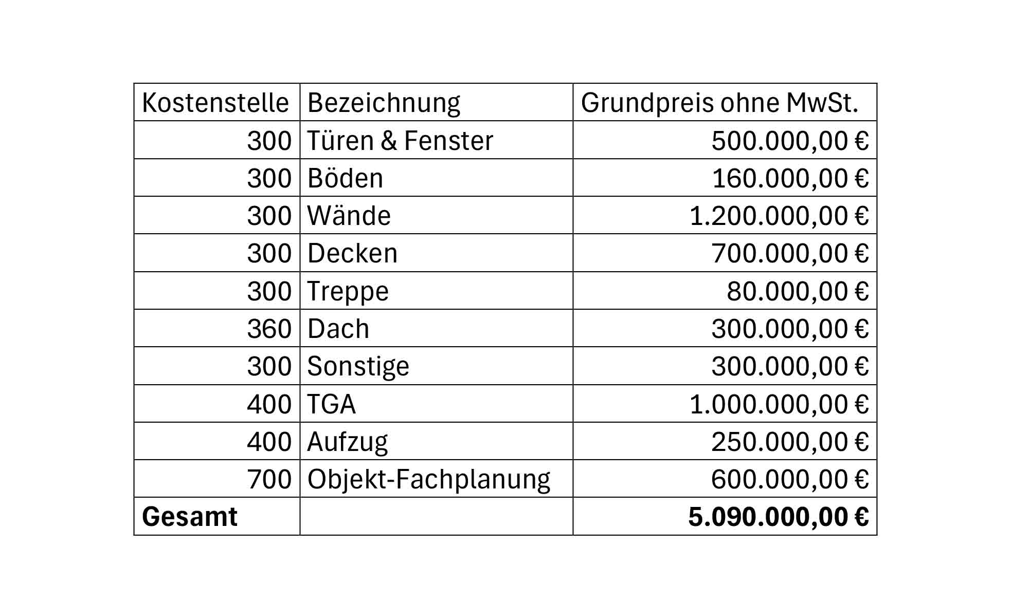 Inklusive der vergleichsweise geringen Aufwendungen für den Schuppen scheinen € 5,5 Mio. bis € 6 Mio. realistisch.