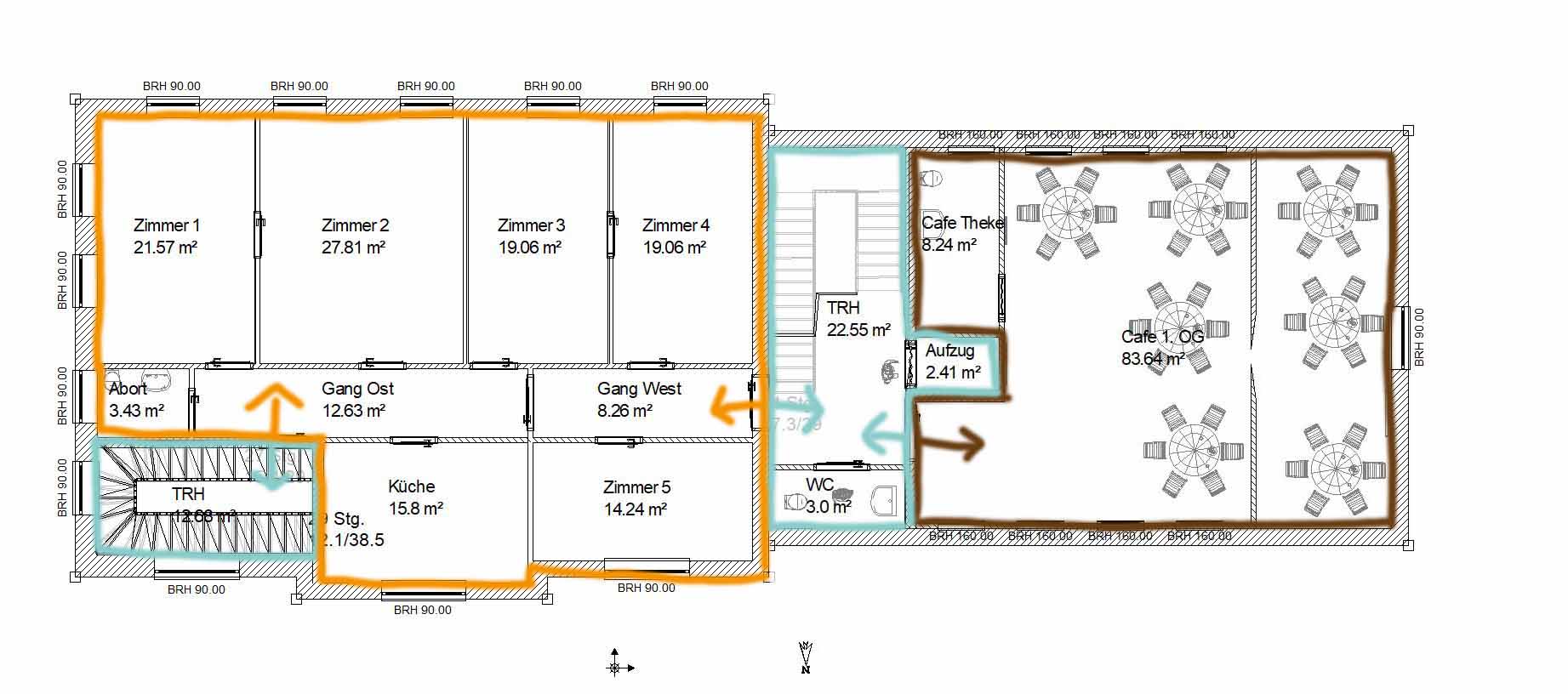 • von dem aus man im EG Hauptgebäude und Anbau erreicht